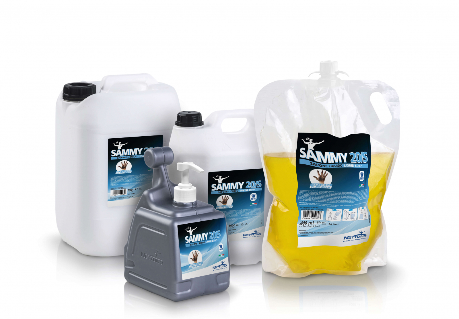 De culoare galbena si parfumat cu esenta de feriga si talc, Sammy 20/S este un sapun lichid extra-puternic fara microsfere. Săpun din uleiuri vegetale, inclusiv ulei de cocos.